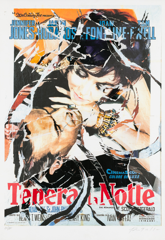 MIMMO ROTELLA (1918-2006)Tenera la notteMultiplo décollagecm 100x70Firma e...