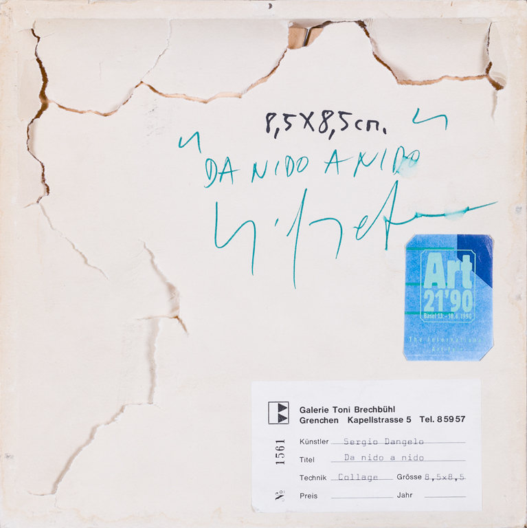 SERGIO DANGELO (1932) Da nido a nido College su tavola cm 8,5x8,5 Firma al...