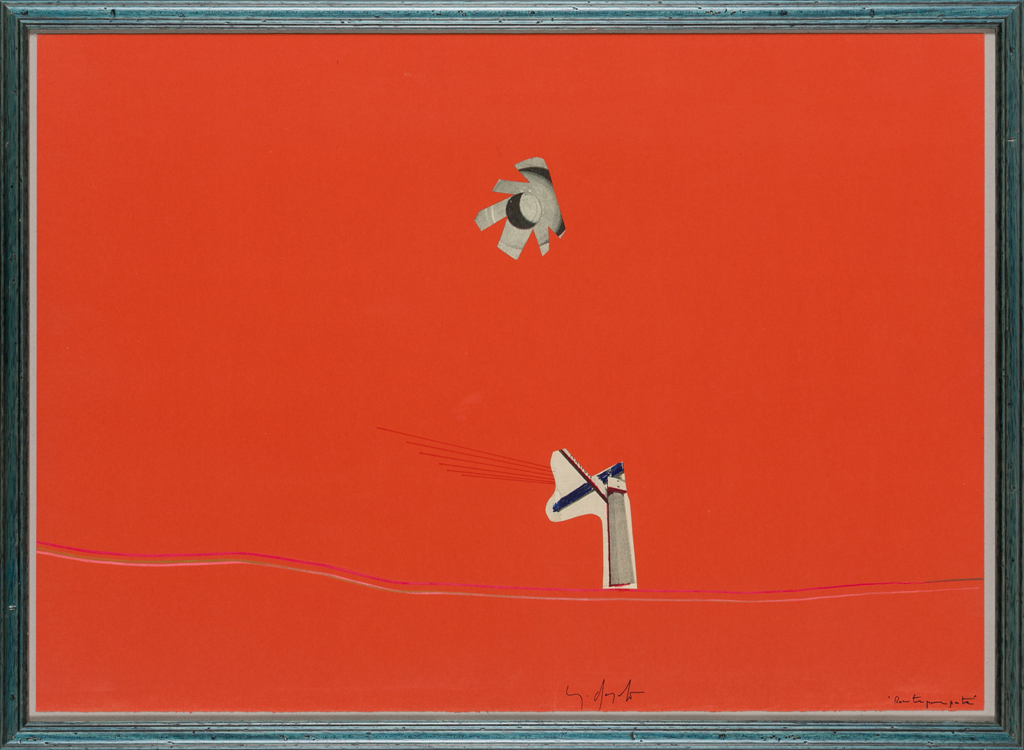 SERGIO DANGELO (1932) Route pour poete Tecnica mista e collage su carta cm...