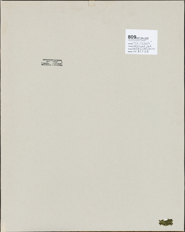 Etichetta della 809 Art Gallery (MI) al retro del cartone protettivo