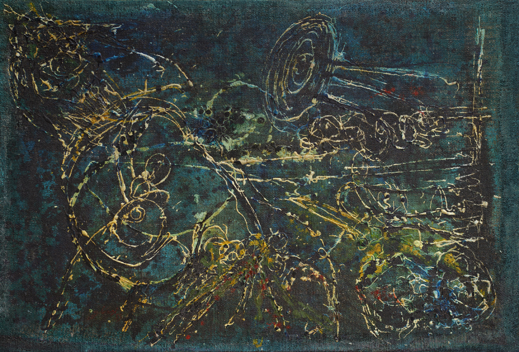 GUIDO BIASI (1933-1983)Senza Titolo, 1955Olio su tela di jutacm 82x120Firma e...