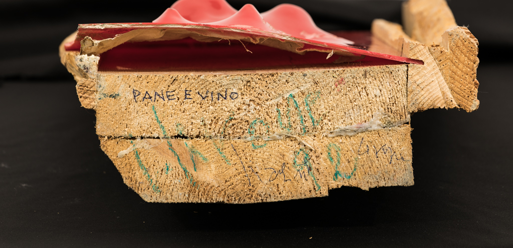 GIACINTO CERONE (1957-2004)Pane e vino, 1992Scultura in legno e plexiglasscm...