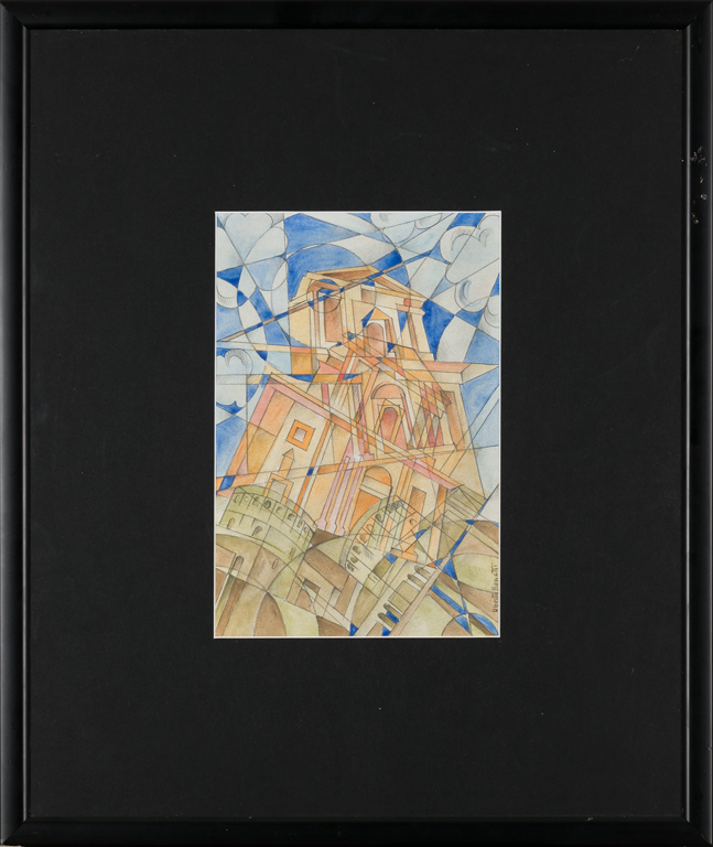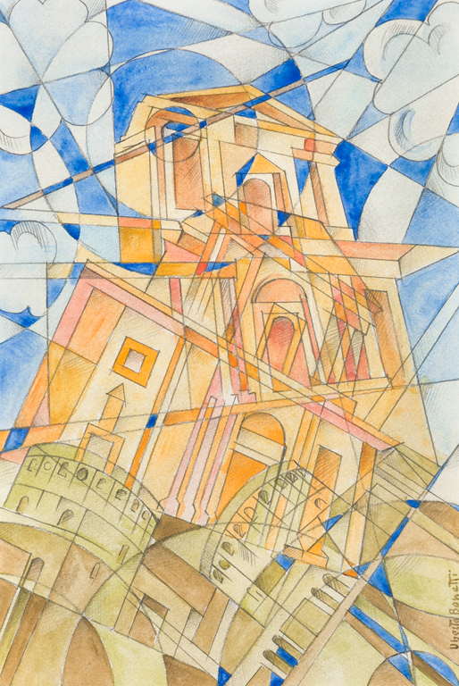 UBERTO BONETTI (1909-1993)Aerovista di Brescia, anni '30 circaTecnica mista...