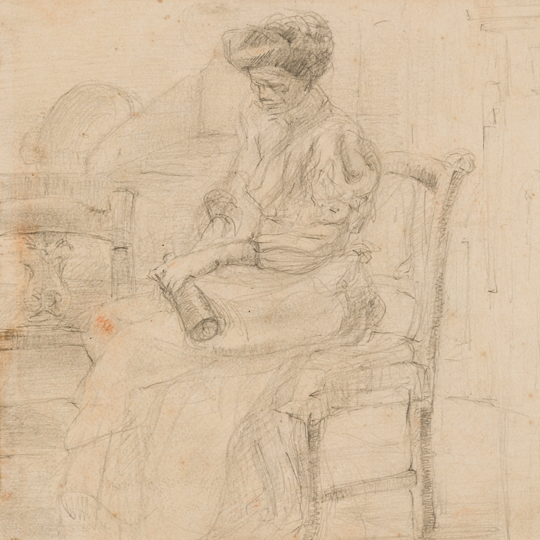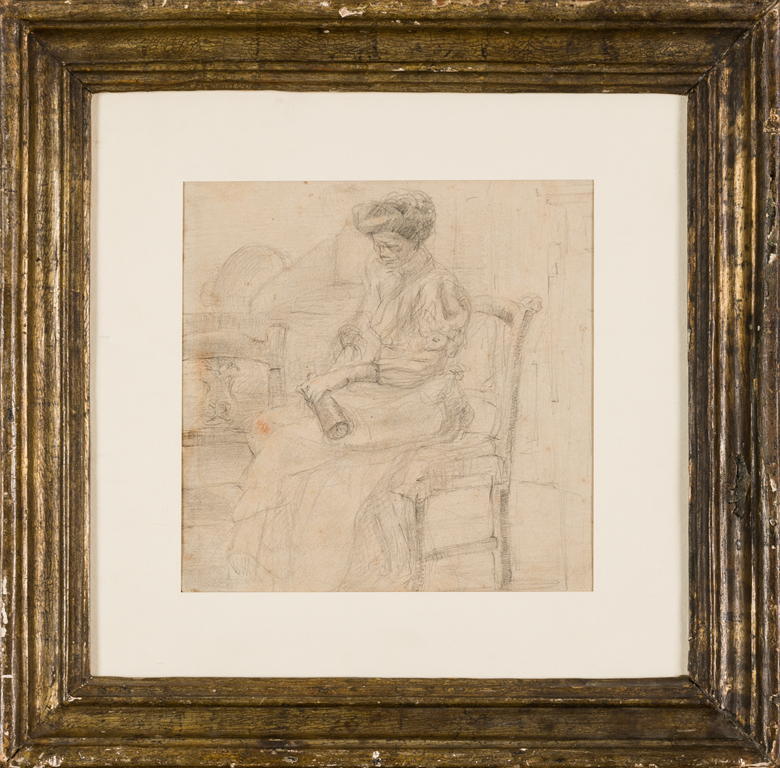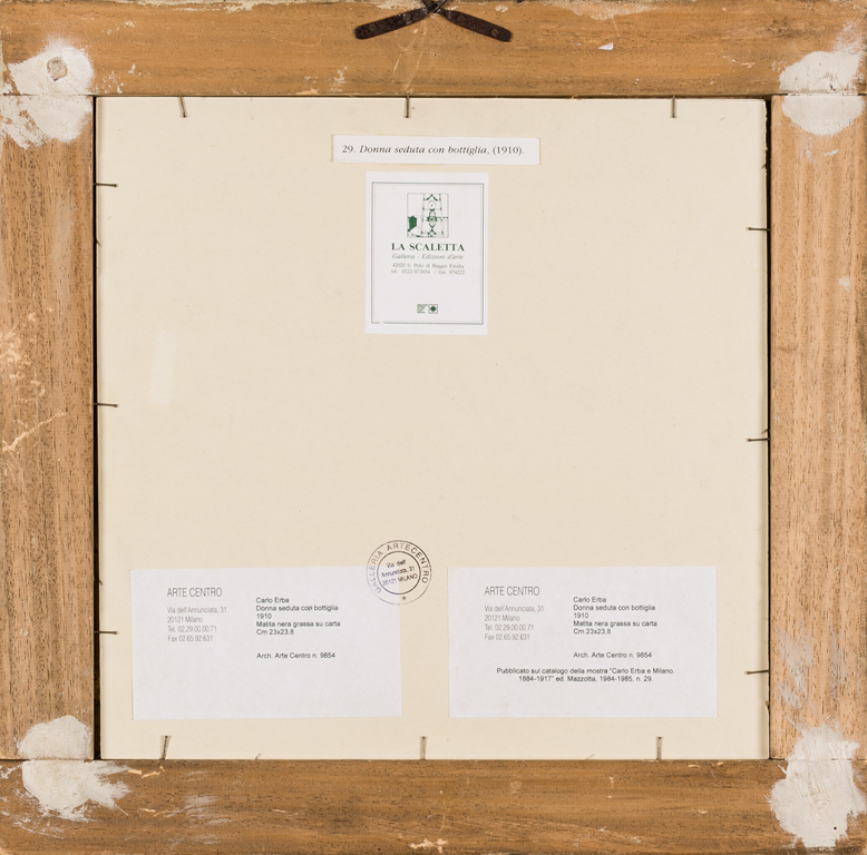 CARLO ERBA (1884-1911)Donna seduta con bottiglia, 1910Matita nera grassa su...