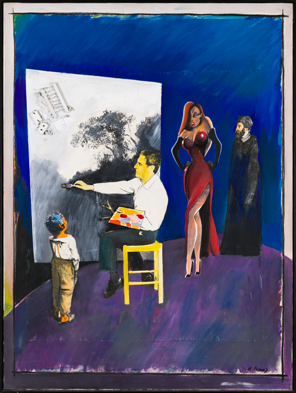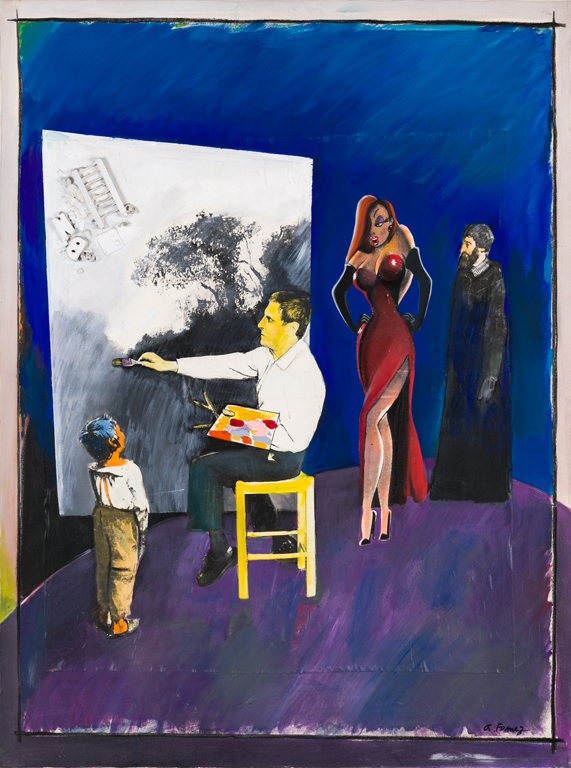 ANTONIO FOMEZ (1937)Senza Titolo (Pittore e Jessica)Acrilico e collage su...