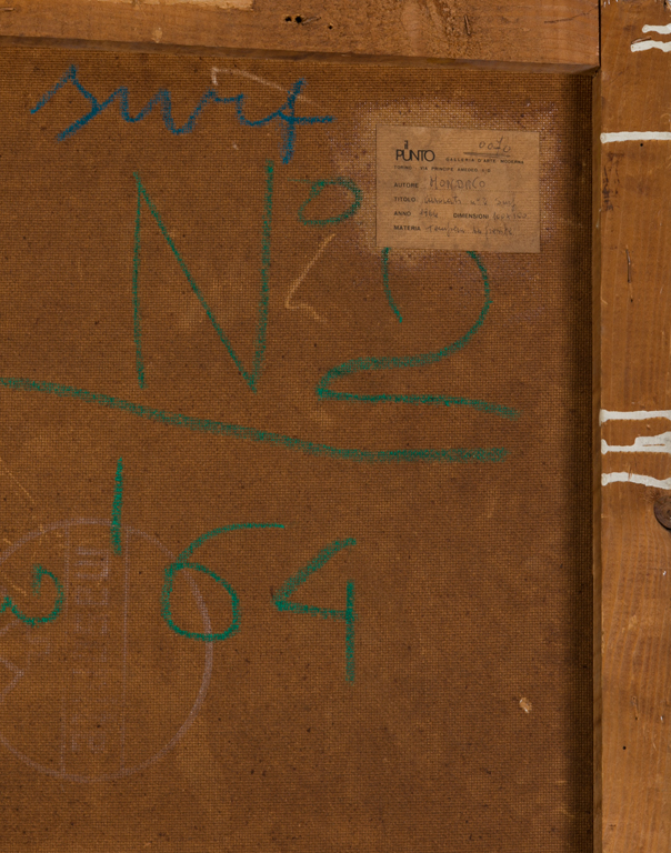 Etichetta della Galleria d'Arte Moderna Il Punto (TO) con caratteristiche tecniche dell'opera al retro