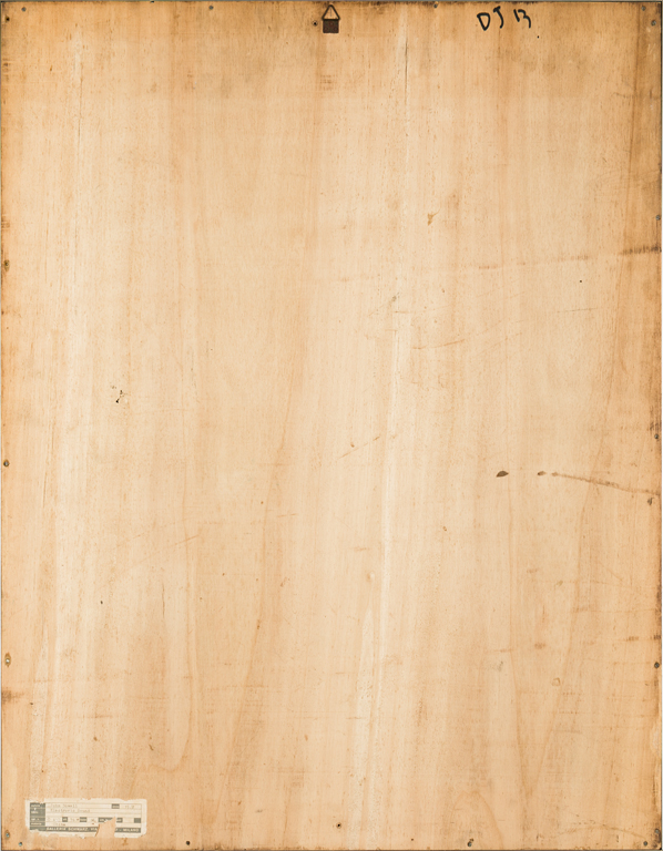Etichetta della Galleria Schwarz (MI) al retro della tavola protettiva