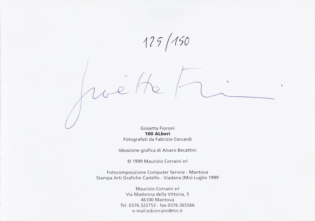 GIOSETTA FIORONI (1932)100 alberi, 1999Libro d'arte con copertina rigida e...