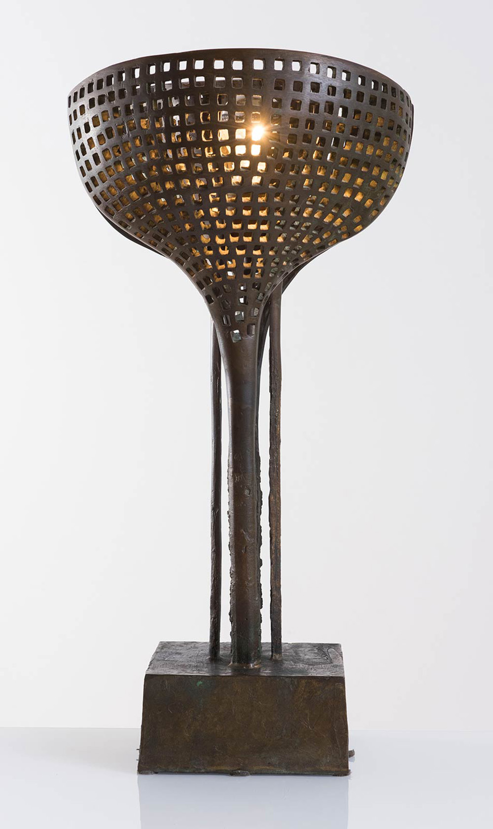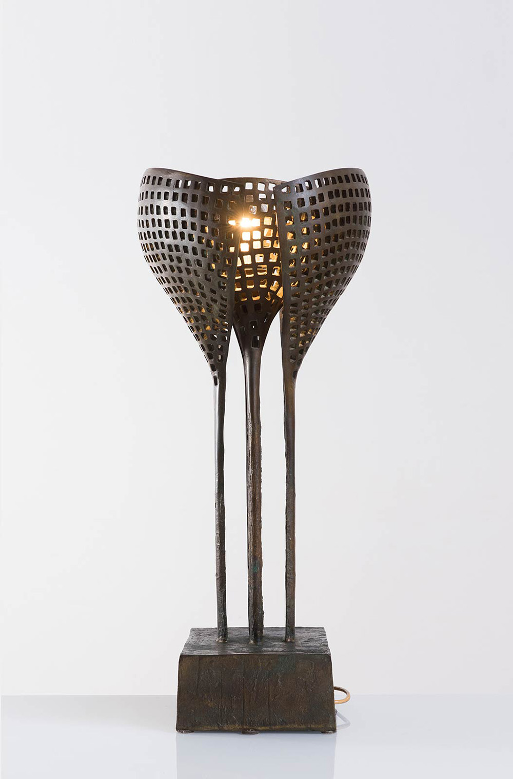 Lucio Lanzarini (XX sec.), Lampada-scultura in bronzo, Anni ‘60. Base...