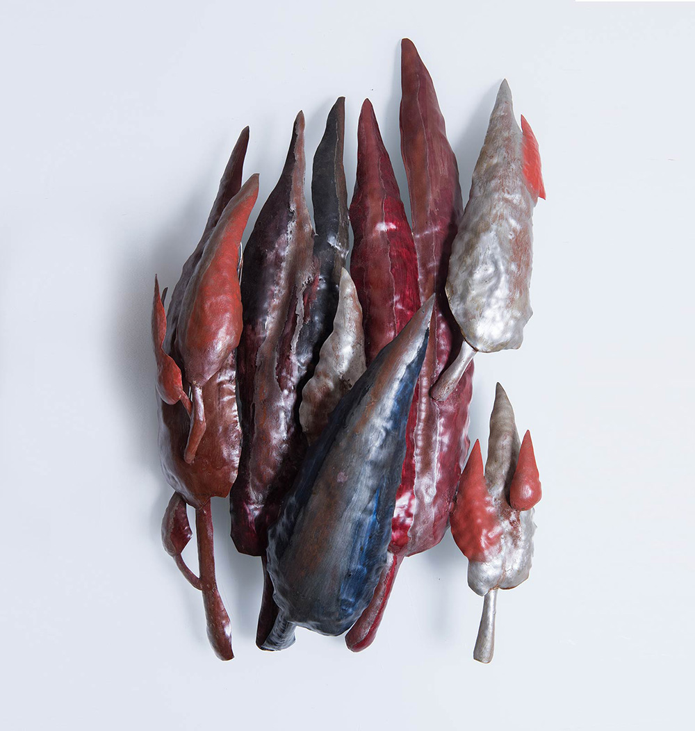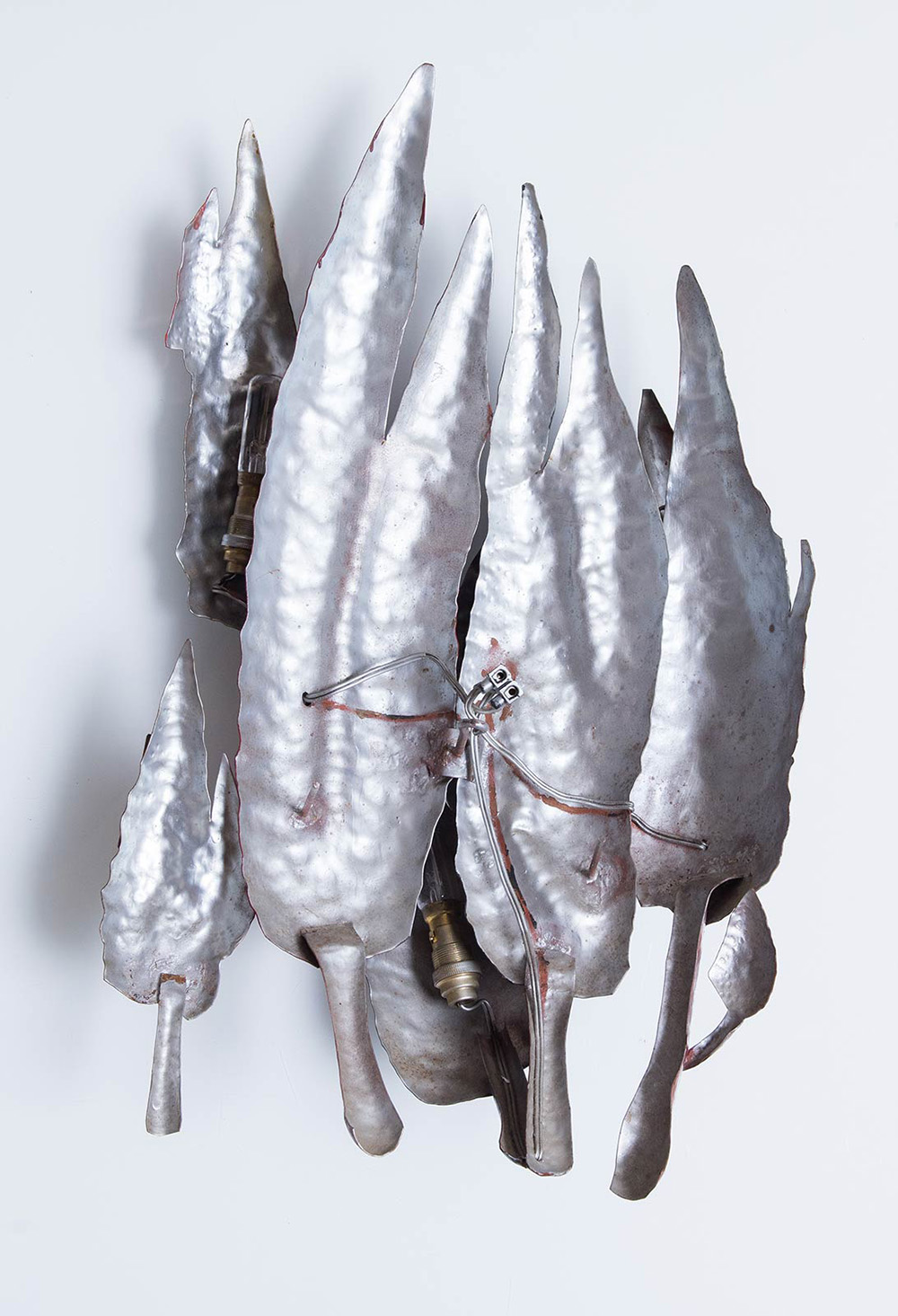 Olivier Parayre (XX-XXI sec.), Applique in ferro dipinto, 1979. Foglie...