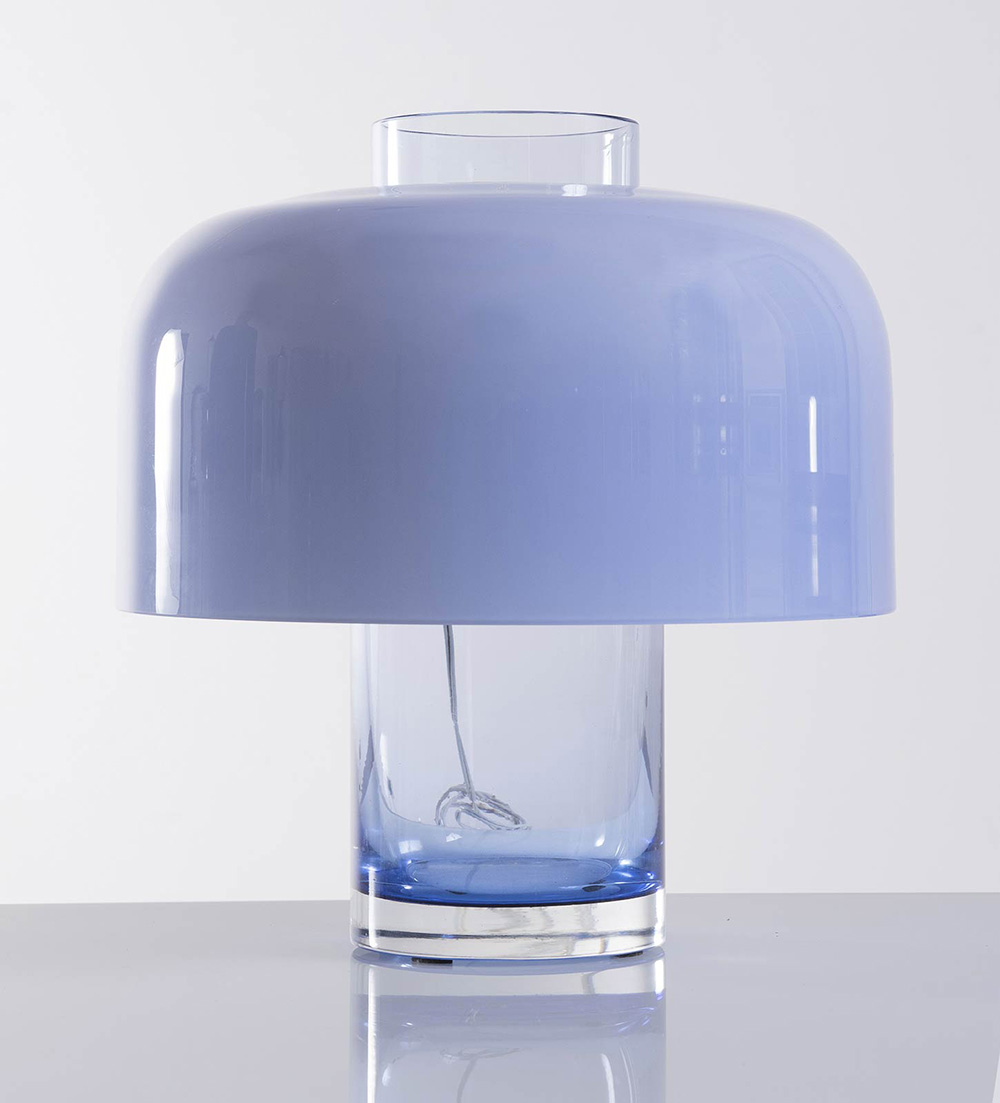 Carlo Nason (1936), Vaso - Lampada da tavolo, Produzione Mazzega, Anni ‘60. In vetro blu con calotta ad interno bianco, H cm 38 - diametro cm 37