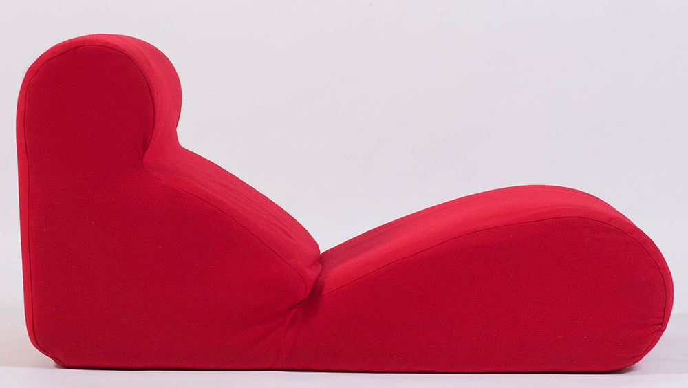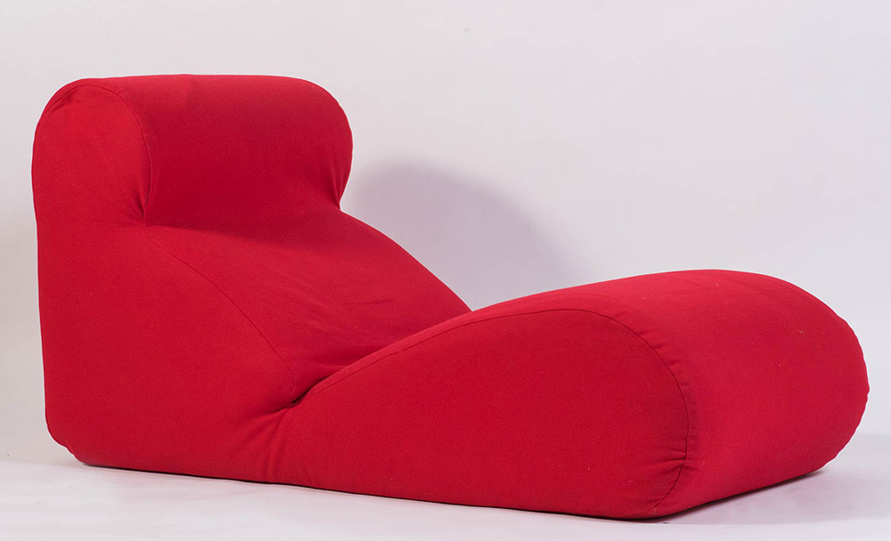Cini Boeri (1924), “Boborelax”, Produzione Arflex, 1976. Chaise longue realizzata con schiume poliuretaniche espanse e rivestita in tessuto rosso, H cm 68x135x65 (usure)