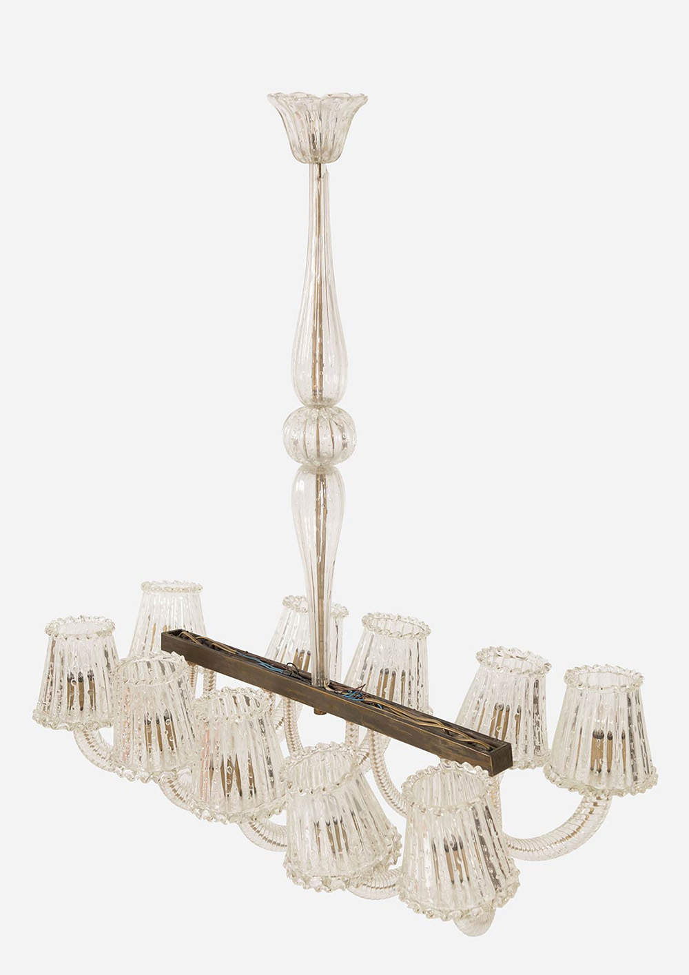 Lot 88 | Lampadario in vetro trasparente di Murano, Anni ‘50. Di forma allungata,...