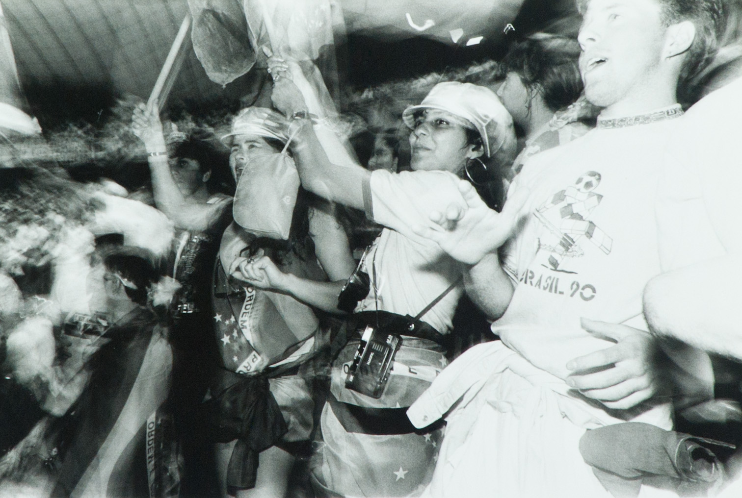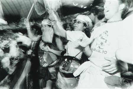 William Klein Torino '90, una città + i Mondiali, 1990 Foto, stampa alla gelatina ai sali d'argento, vintage, cm. 18x24 La serie di Torino '90, è stata realizzata dall'Autore su incarico di Torino Fotografia a documentazione ed interpretazione dell'evento sportivo che la città di Torino visse nel 1990. L'Artista ha realizzato circa 300 scatti (tutti diversi tra loro) per poter selezionare le immagini che avrebbe poi pubblicato sul libro edito per l'evento nel 1990 da Mazzotta. Tutte le fotografie recano al verso il timbro originale di Torino Fotografia e sono numerate a pennarello nero dall'Artista. Sul verso: timbro "Torino fotografia" con n° 222.