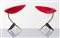 Coppia di lampade da tavolo, Produzione Tedesca, Anni ‘60. Struttura in ottone e piedi laccati neri, diffusore in plexiglas curvato di colore rosso, H cm 20x20 (difetti ai diffusori e usure)