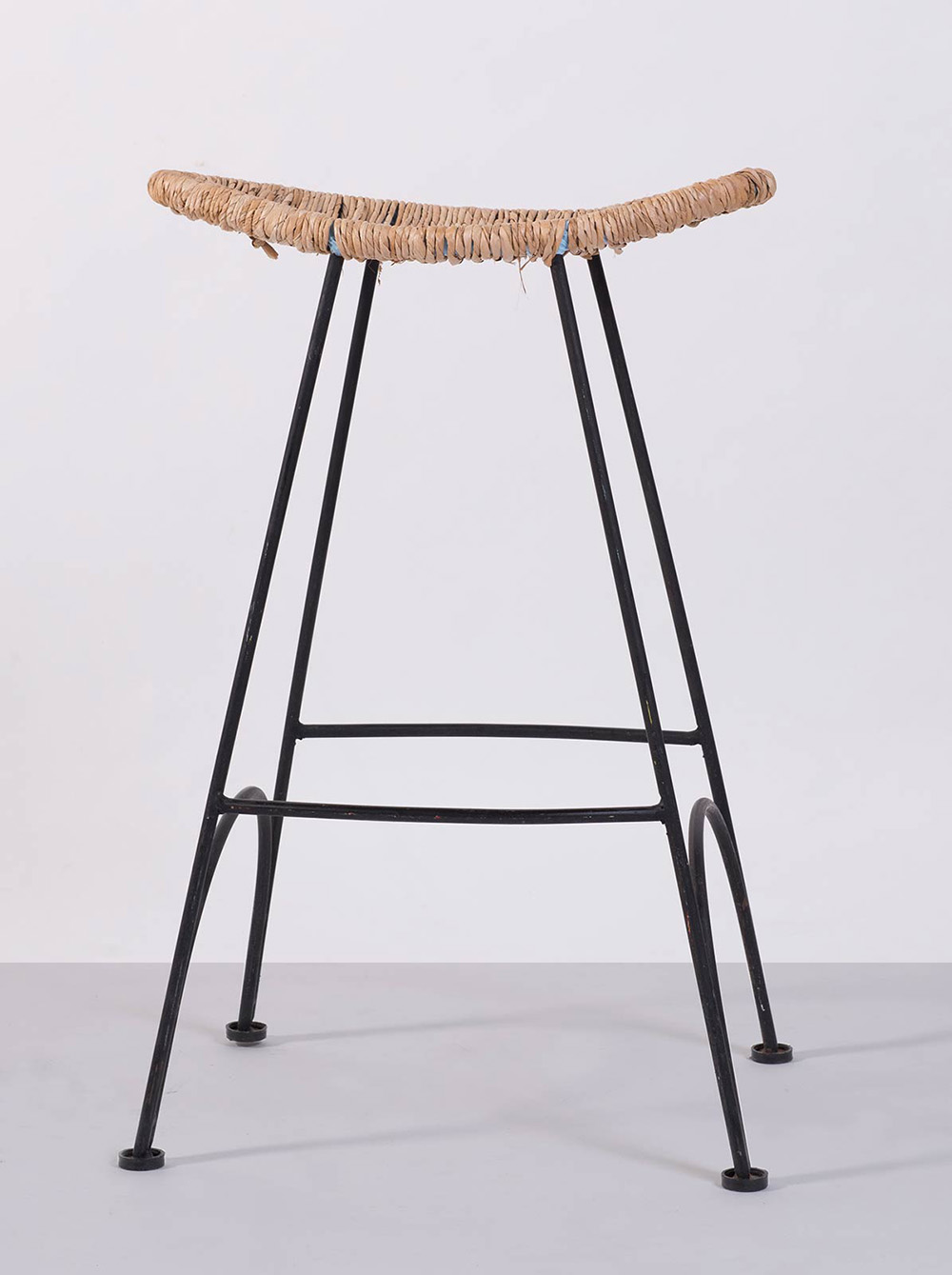 Tom Dixon (1959), Sgabello mod. “Banana”, Produzione Cappellini, Anni ‘80. Struttura in metallo laccato nero e seduta in corda di banano, H cm 80 - seduta cm 51x27 (usure)