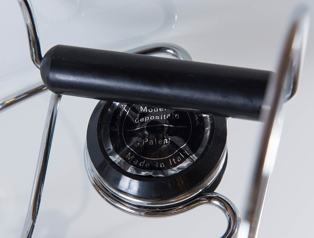 Francesco Fois (XX sec.), Lampada da scrivania, Produzione Reggiani, Anni ‘70. Struttura in acciaio ed elementi in plastica nera, spot orientabile, meccanismo a molla, reca etichetta originale, H cm 35 circa (lievi usure)