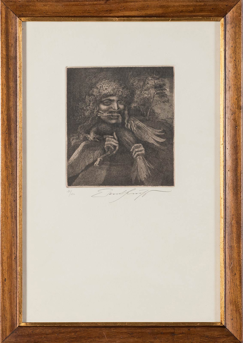 Ernst Fuchs (Vienna, 1930 - 2015), “Senza titolo”. Acquaforte, firmata in basso a sinistra Ernst Fuchs, numero di tiratura in basso a sinistra 11/100, Lastra H cm 19x17, Foglio H cm 30.5x46.5
