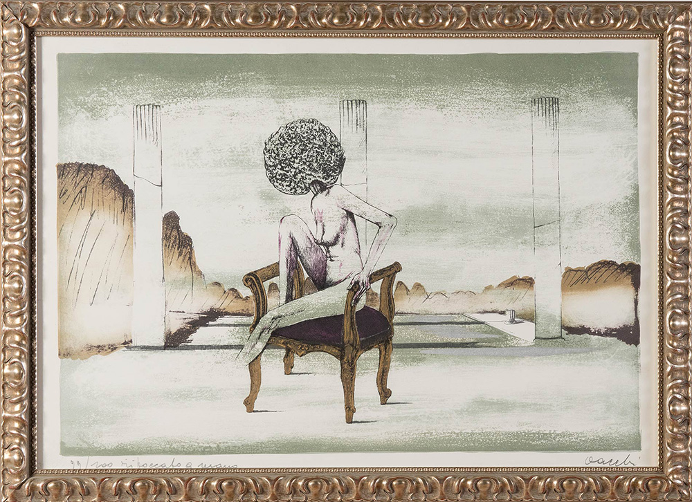 Sergio Vacchi (Castenaso, 1925 - Siena, 2016), “Piscine lustrali”. Litografia ritoccata a mano, firmata in basso a destra Vacchi, numero di tiratura in basso a sinistra 99/100, H cm 44.5x64.5