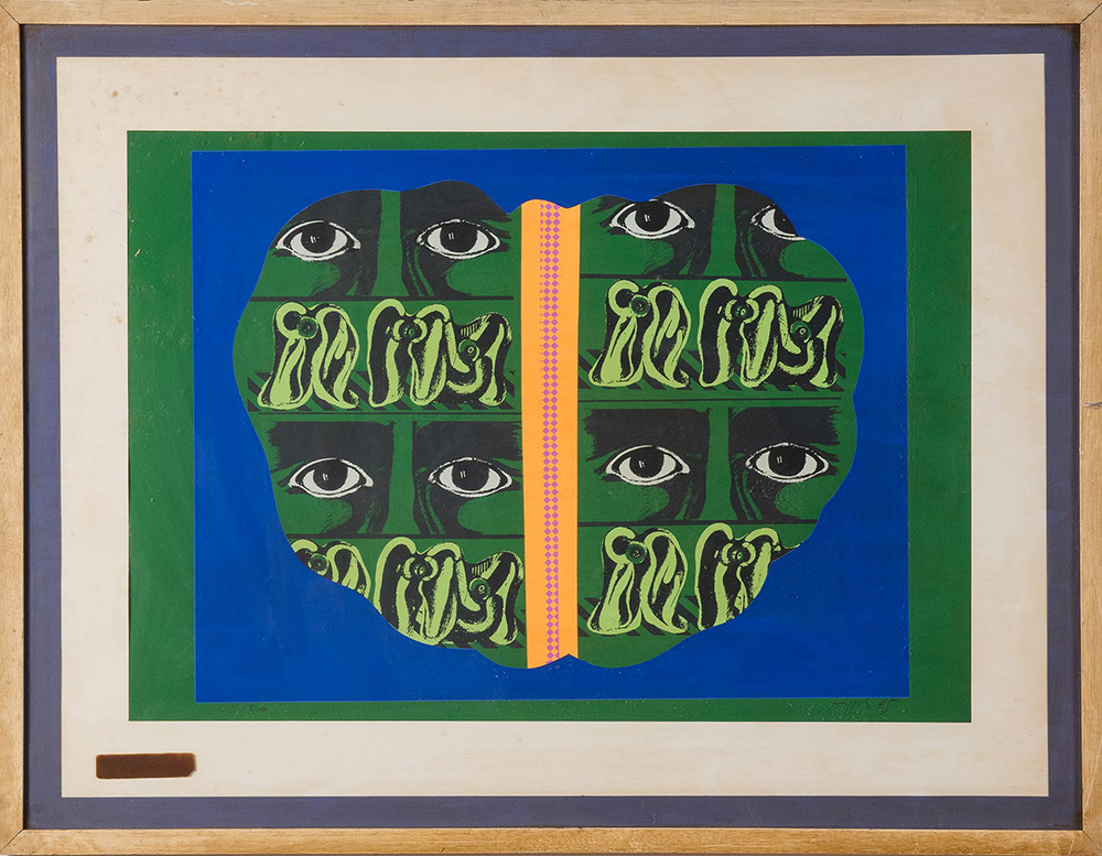 Concetto Pozzati (Vo', 1935 – Bologna, 2017), “Il guardone”, 1965. Serigrafia a colori su carta, firmata e datata in basso a destra Pozzati 65, numero di tiratura in basso a sinistra 28/150, Lastra H cm 46.5x66.5