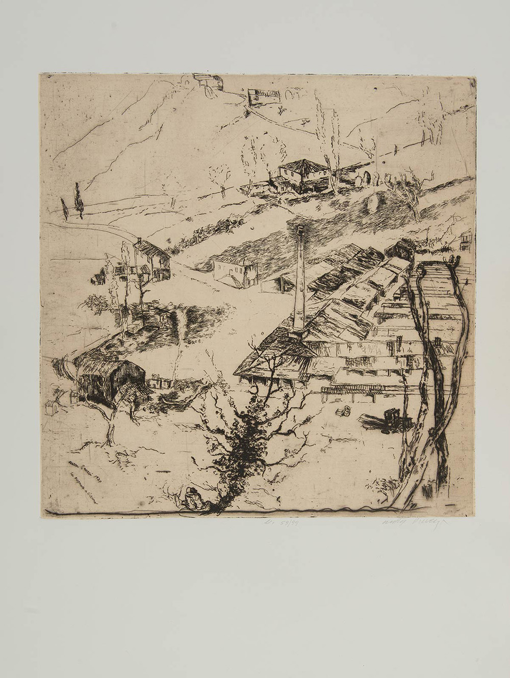 Walter Piacesi (Ascoli Piceno, 1929), “Paesaggio”. Incisione su carta,...