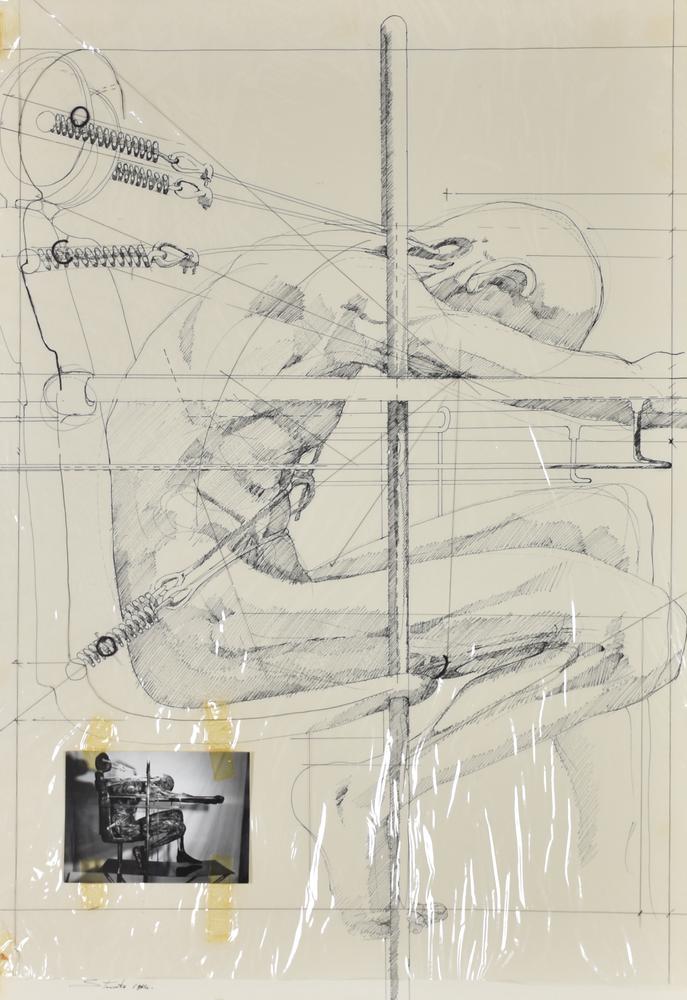 Sebastiano Trovato Senza titolo tecnica mista e collage su carta, cm 70x50 sul fronte: firma e data eseguito nel 1974