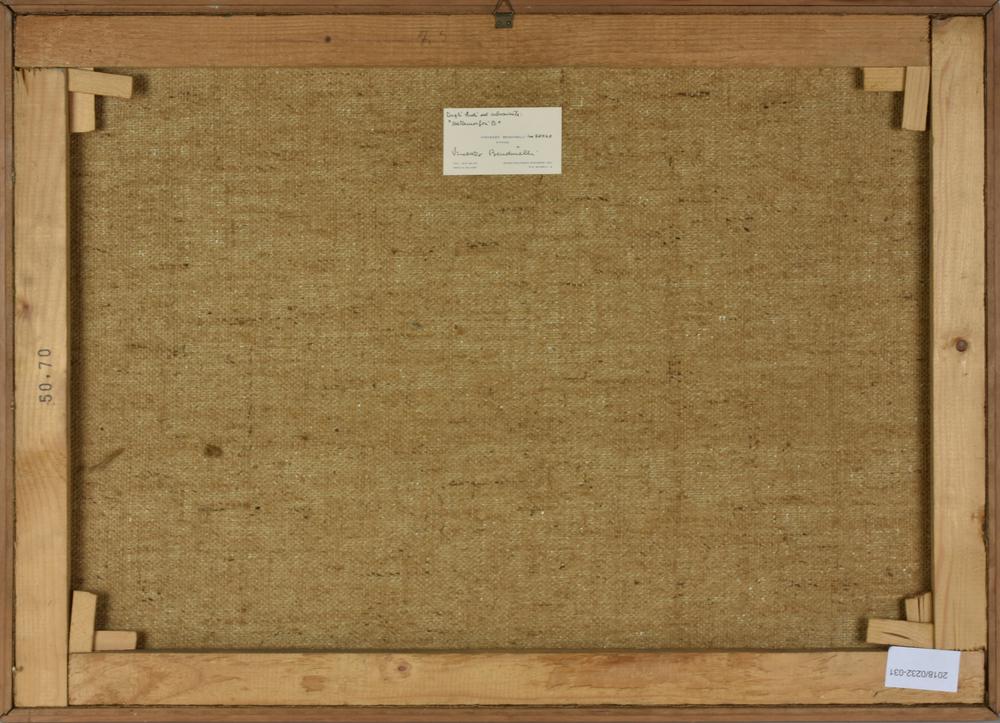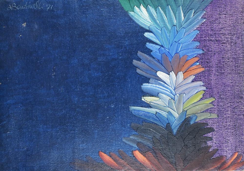 Vincenzo Bendinelli DAGLI STUDI DEL SUBCOSCIENTE: METAMORFOSI B olio su tela di juta, cm 50x70 sul fronte: firma e data sul retro: etichetta con firma e titolo eseguito nel 1971 L'opera presenta alcune cadute di colore