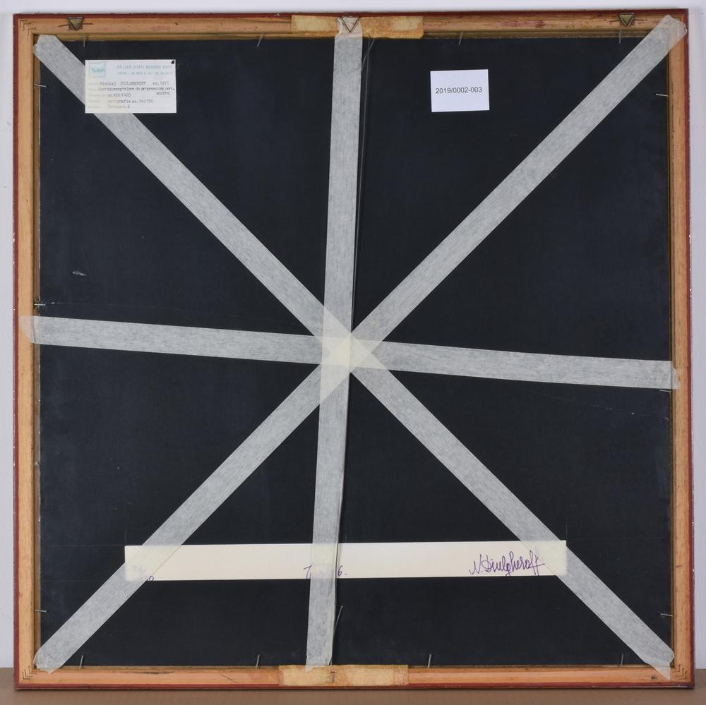 Nicolay Diulgheroff Inscrizione circolare da progressione nero-azzurra. Tavola n. 6 serigrafia su carta, cm 42x42 esemplare 74 su 150 sul retro: firma eseguita nel 1971