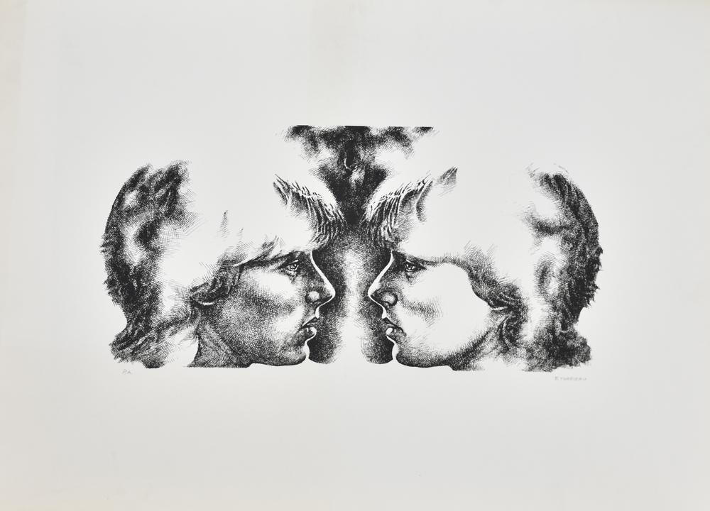 Elio Torriero I Due Volti litografia su carta, cm 50x70 esemplare prova d'autore sul fronte: firma