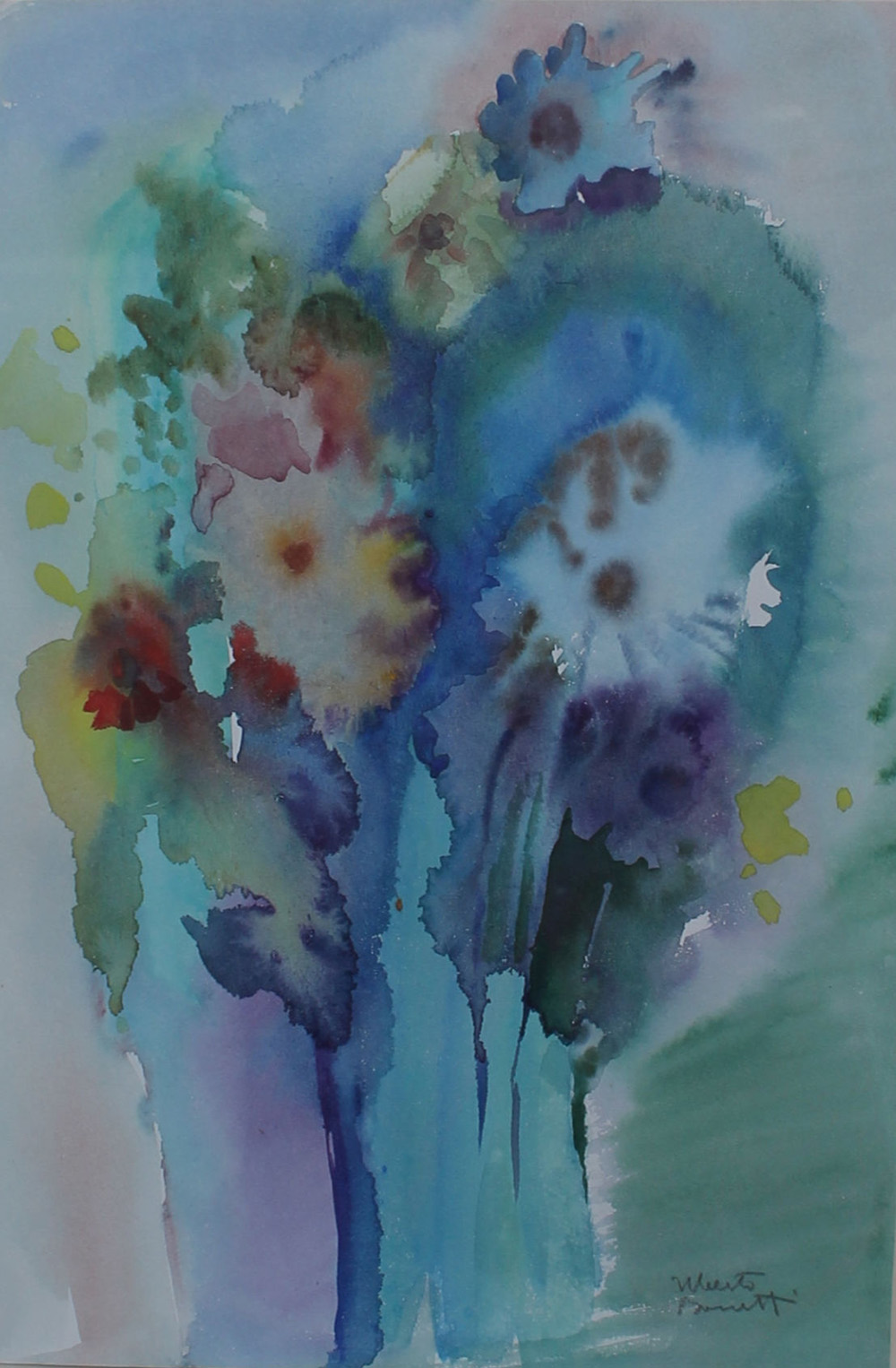 Uberto Bonetti, Vaso di fiori, anni 70 Acquerello su carta, 43cm x 28cm. Firmato su fronte opera