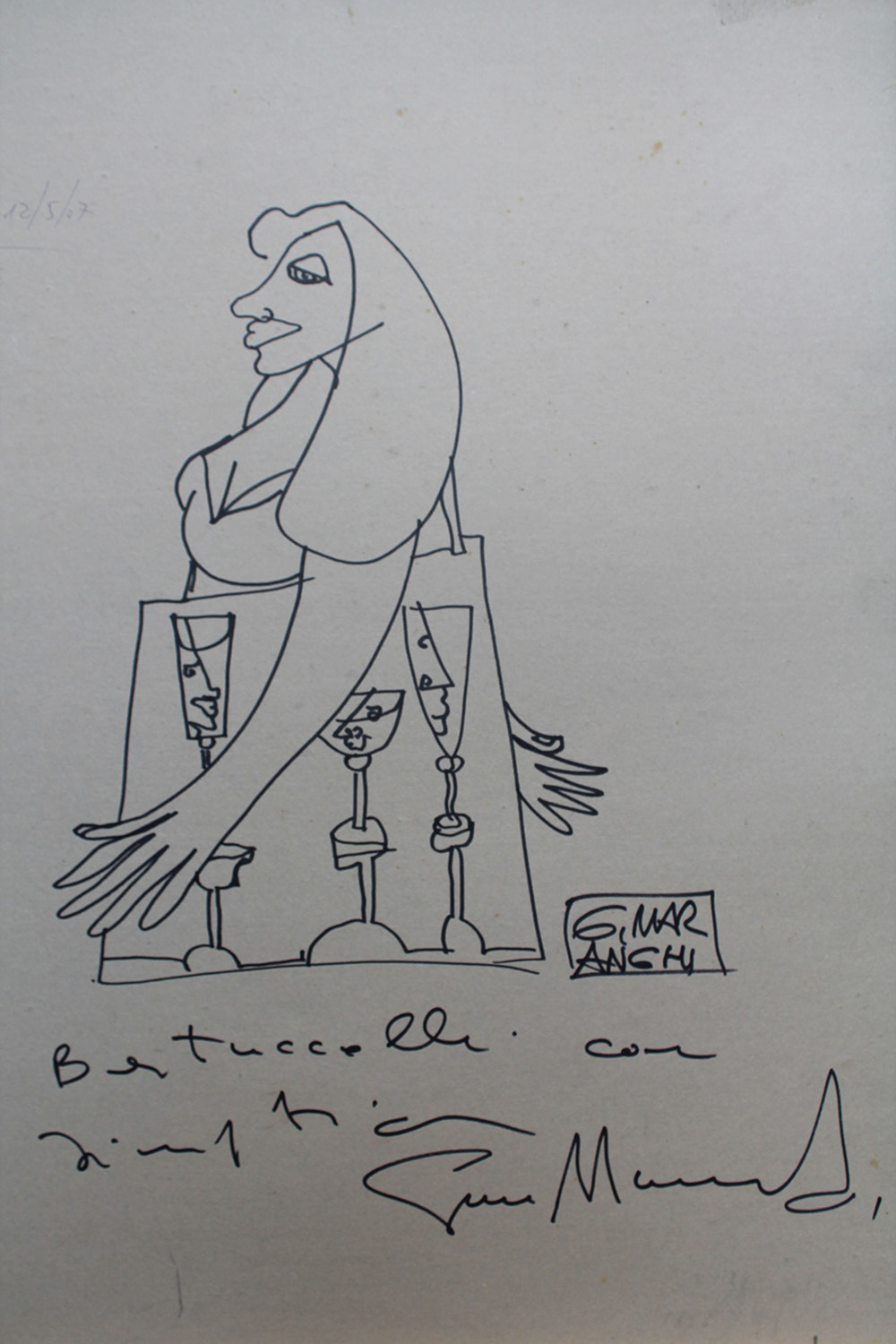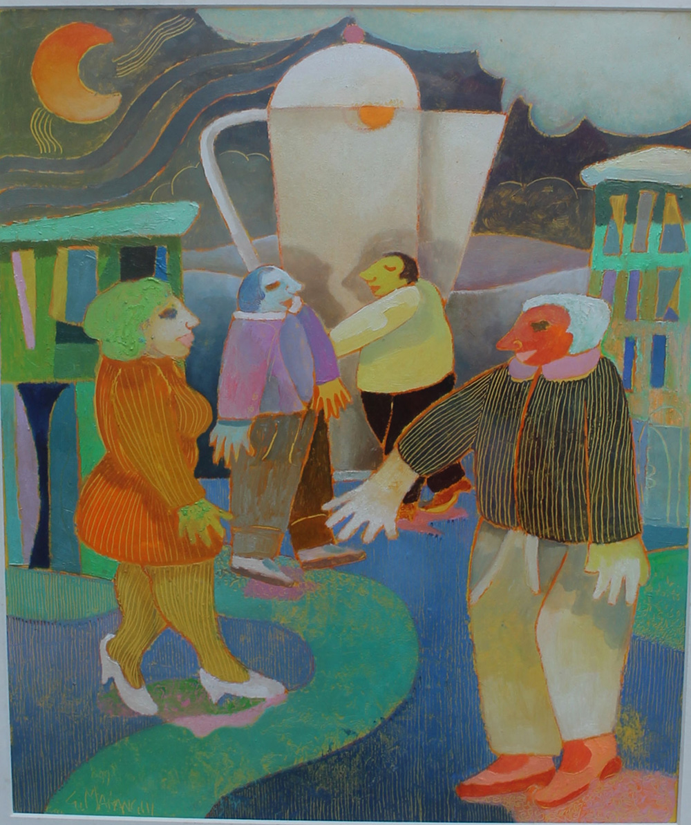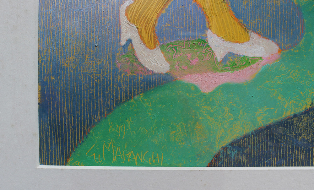 Giovanni Maranghi, L'incontro, 1999 Olio su carta, 60cm x 50cm. Autentica e dedica del maestro sul retro opera ed certificato di autenticità Galleria Faustini Forte dei Marmi