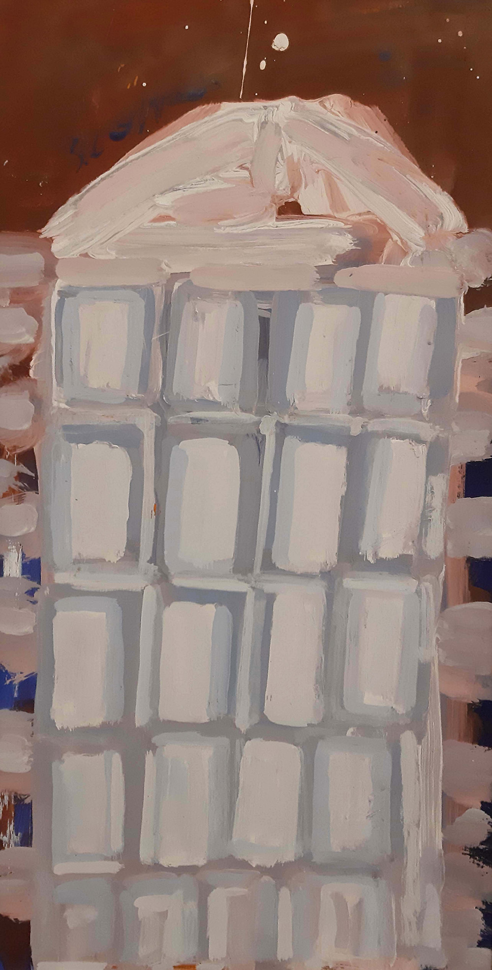 Silvio Loffredo, Battistero, Olio su faesite, 83cm x 43cm. Autentica su foto dell'artista