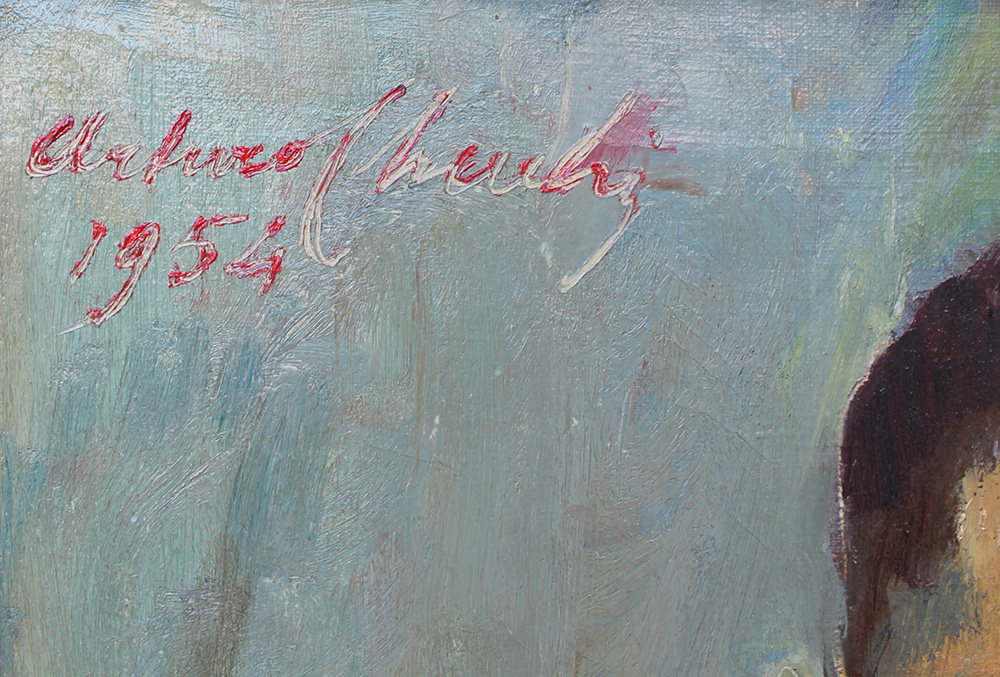Lot 77 | Arturo Checchi, Ritratto di adolescente, 1954 Olio su tela, 120cm x 60cm....