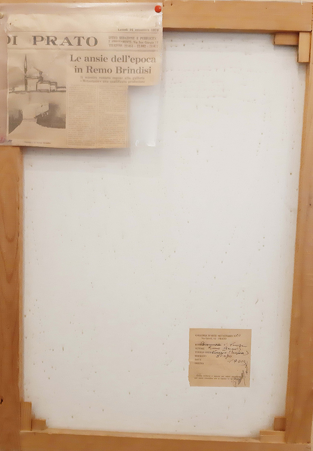 Remo Brindisi, Senza titolo, 1969 Tempera su cartoncino riportata su tela, 70cm x 50cm. Autentica galleria di provenienza e pubblicazione su rivista del 1970