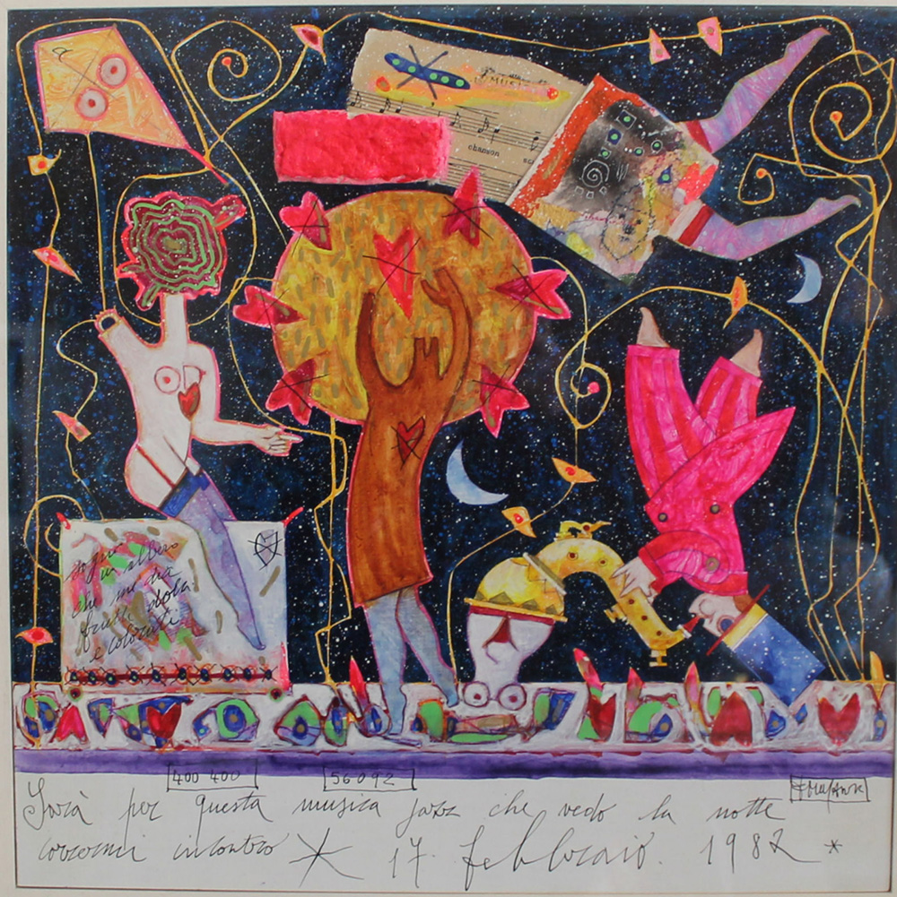 Francesco Musante, Sarà per questa musica jazz che vedo la notte corrermi incontro, Tecnica mista su masonite, 40cm x 40cm. Autentica su foto dell'artista