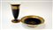 Manifattura di Rosenthal. Lotto composto da un centrotavola e un vaso in porcellana a smalto blu con fasce dorate (d. centrotavola cm 34 e h. vaso cm 29) (difetti)