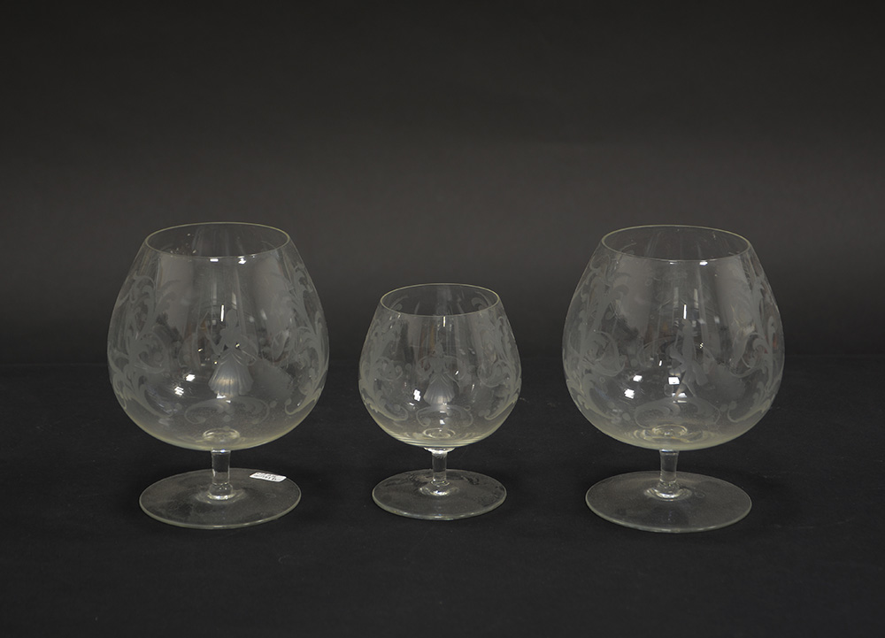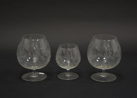 Lotto composto da undici bicchieri da cognac di misure diverse decorato con...