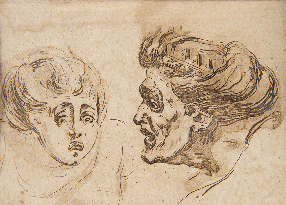 Acquaforte del secolo XIX raffigurante studio per volti (mm 70x90) In cornice