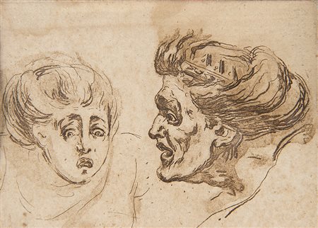 Domenico Morelli "Project for faces" china and watercolour on paper (mm 70x90) Framed
