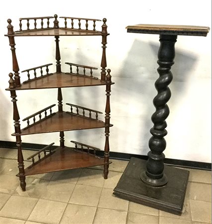 Lotto composto da un etagère angolare e una colonna portavaso tortile in legno(difetti e mancanze)