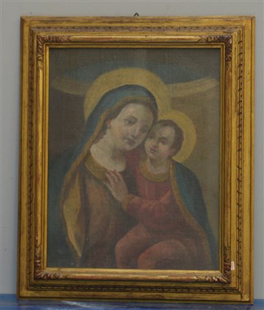 Ignoto "Madonna con Bambino" olio su tela (cm 47x37) In cornice (difetti e...
