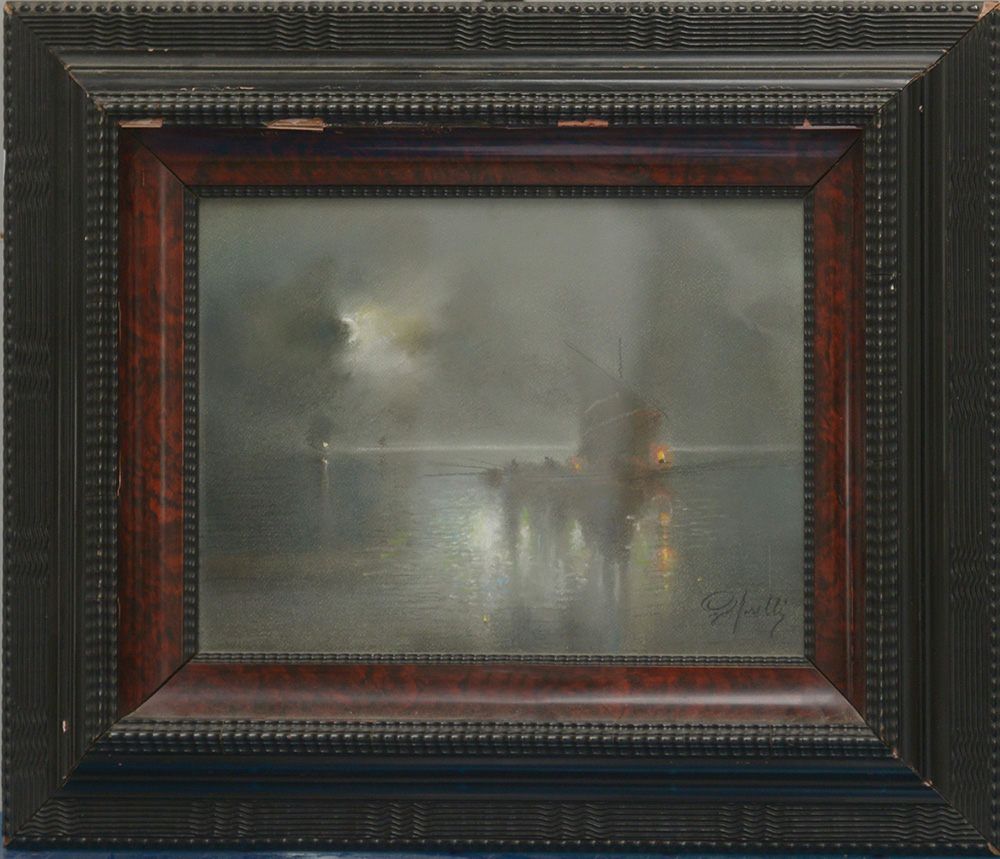 Tullo Golfarelli (Cesena 1852 - Bologna 1928)"Pesca notturna" pastello e...