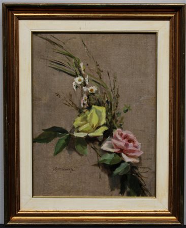 Ludovico Tommasi (Livorno 1866 - Firenze 1941)"Composizione con rose" olio su...