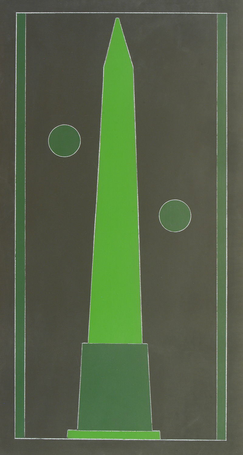Franco Angeli Obelisco, 1988 Smalto su tela, cm. 110x60 Sul verso: firma e titolo. Autentica di Angiolino Calestani su foto con Archivio n° P.P. 2178.