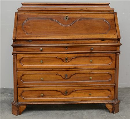 Ribalta in noce a tre cassetti e mezzo con calatoia celante sei cassettini, Lombardia secolo XVIII (cm 109x113x52) (difetti)