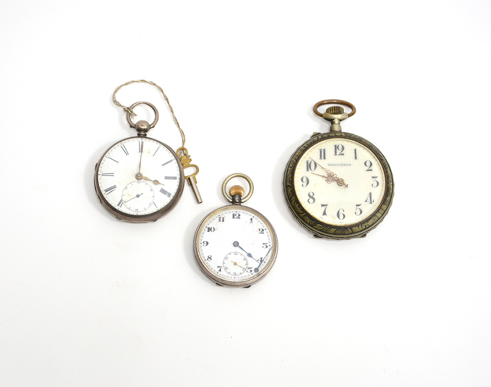 Lotto composto da tre orologi da tasca in argento e metallo, uno con cassa...