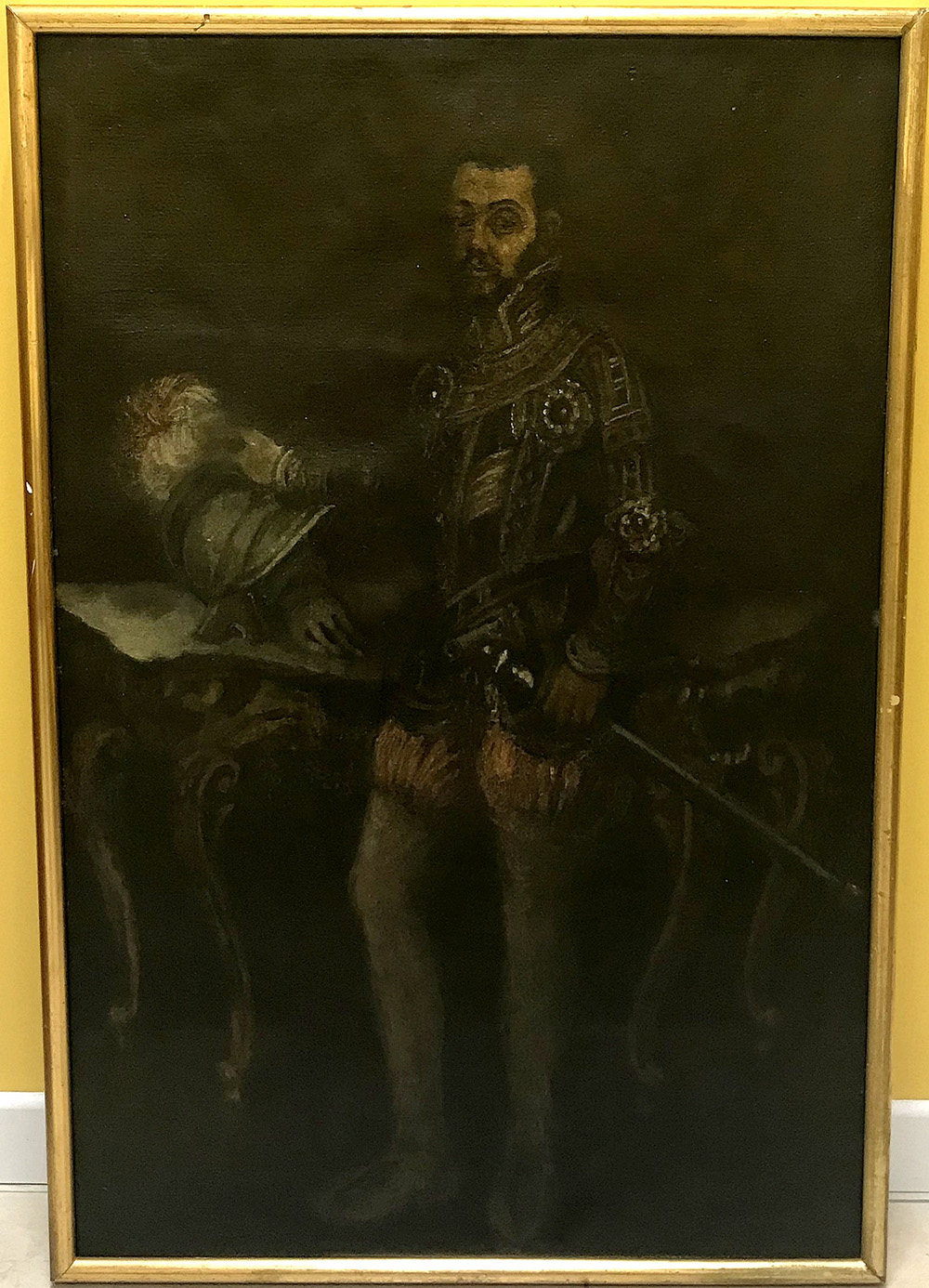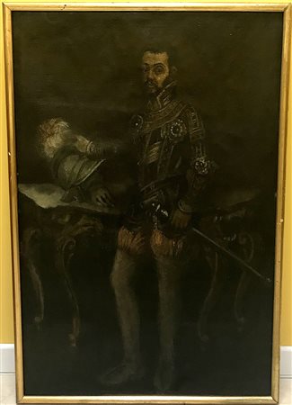 Ignoto, "Uomo in armatura" olio su tela, in cornice (cm 75x51) (gravi difetti e restauri)