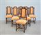 Gruppo di sei sedie con schienale intagliato e traforato. Montanti e gambe a...
