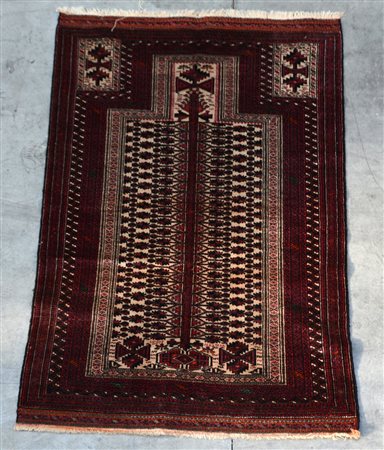 Tappeto preghiera Afghan, Turkestan occidentale. Mirab a fondo bianco (cm 136x97) (difetti)