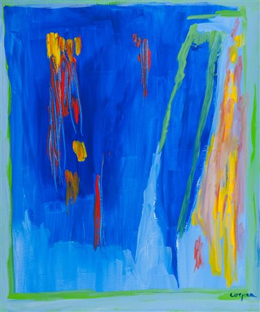 Antonio Corpora La fiaba marina della sirena, 1989 Acrilico su tela, cm. 65x55 Firmato in basso a destra. Sul verso: firma, data e titolo. Autentica dell'Artista su foto con etichetta "Giovanni di Summa Archivio Antonio Corpora", Roma.